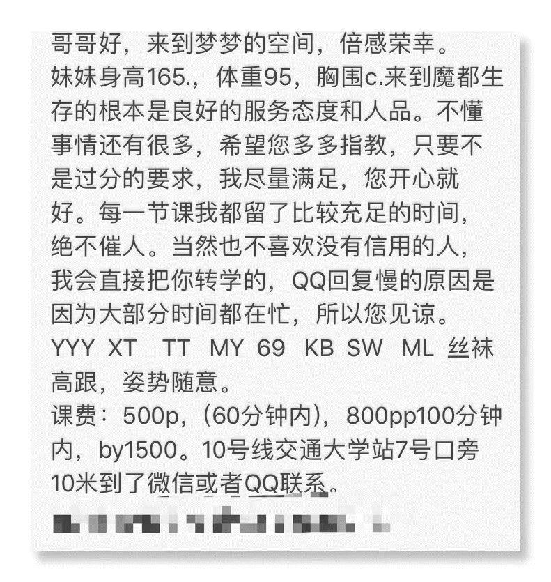 前两天看一个兄弟发的帖子,加了联系方式,昨天正好有空约好了时间,课表上的服务该有的都有,小姐姐年轻,