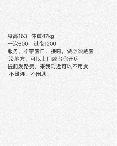 颜值一般,和相片差距不大,整体感觉不错,因为便宜,最低300,夜宵1000。身材不错,年轻吗,但是交